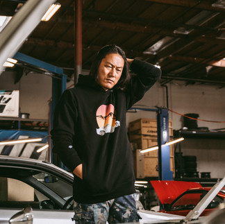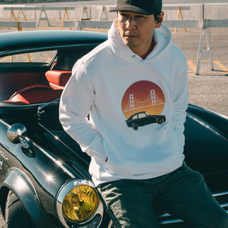 The white hoodie features a bay area motif with the iconic Golden Gate Bridge and a side profile of Daniel Wu's iconic Honda S800. The black version has the world-famous FuguZ built by Sung Kang emblazoned over an image of the Hollywood Hills. Both designs pay homage to the MAD Magazine Spy vs. Spy series, and feature the logos of both companies.